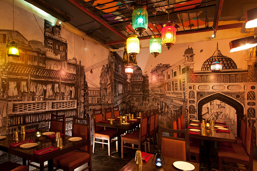 NOT JUST PARATAS – also known as NJP. After doing a few of restaurants for this chain the client wanted something different. Hence came introduction of classic b/w tiles, concrete walls and a central bar